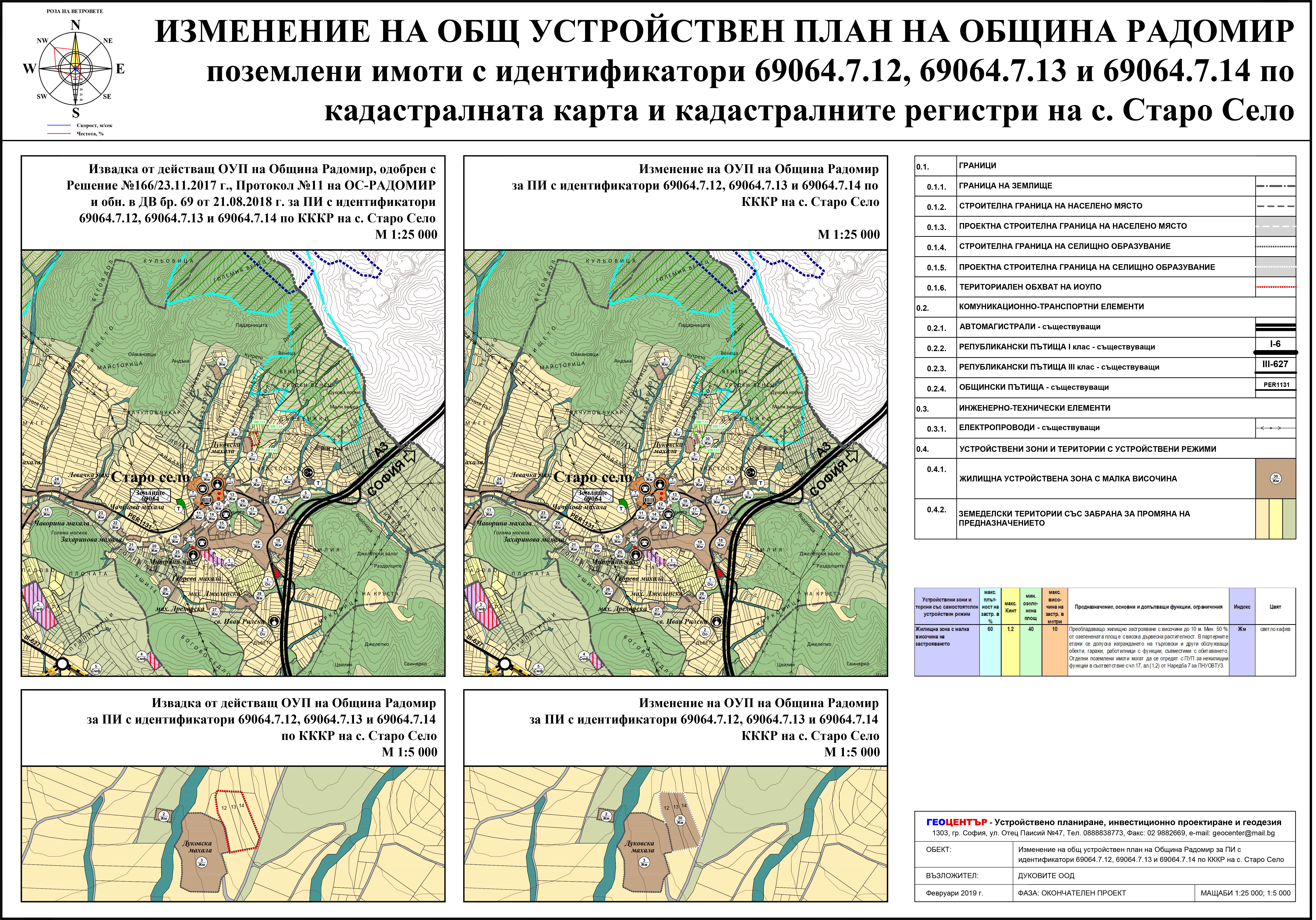 На основание чл.127 от Закона за устройство на територията „Дуковите“ ООД съобщава, че се организира обществено обсъждане на Изменение на Общ устройствен план на Община Радомир за поземлени имоти с идентификатори 69064.7.12, 69064.7.13 и 69064.7.14 по кадастралната карта и кадастралните регистри на с. Старо Село. Обществено обсъждане ще се проведе на 11 март 2019 г. от 14.00 часа в залата на МКИЦ /Младежки дом/ гр. Радомир.